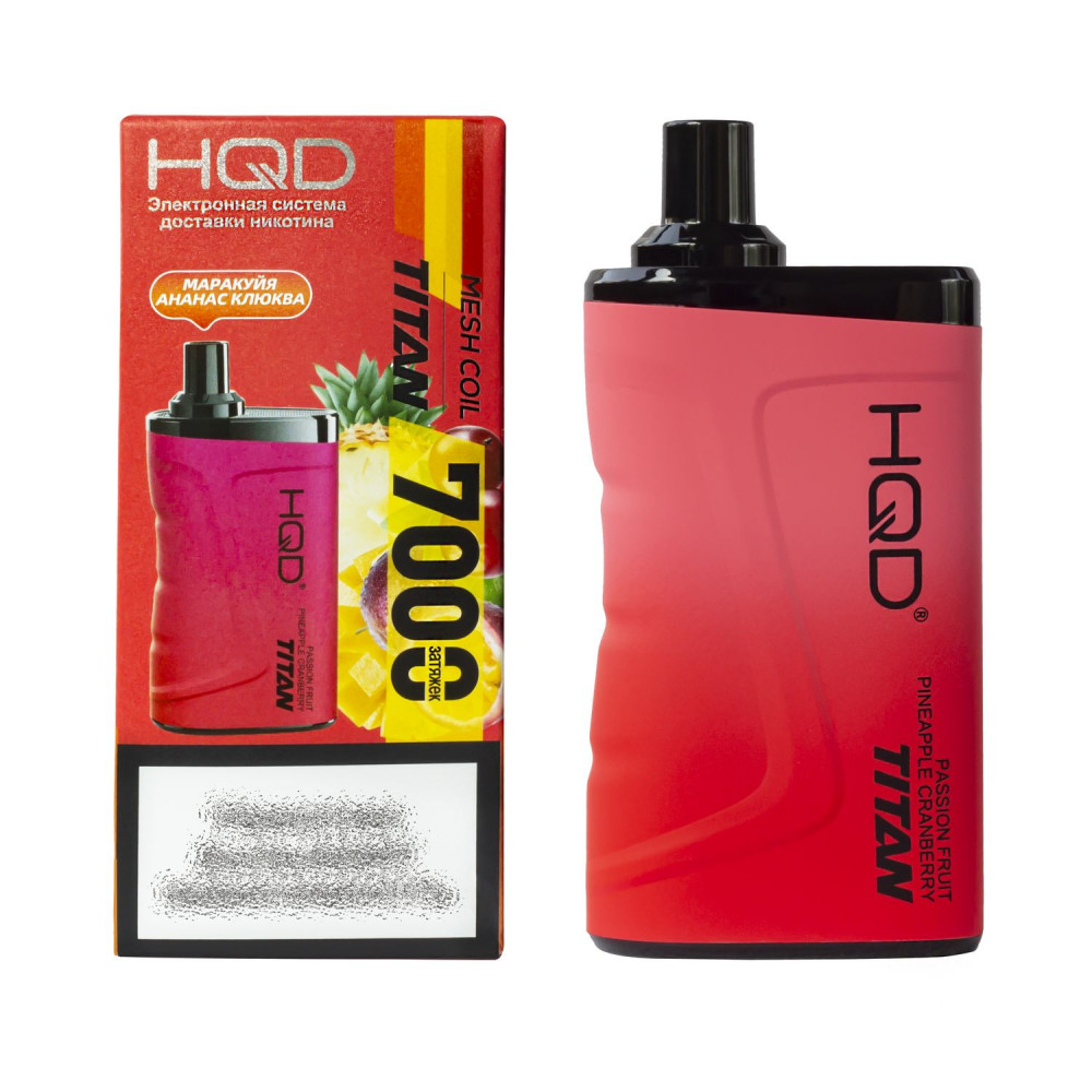 HQD видыTitan (Титан) HQD вкусыМаракуйя Ананас Клюква HQD количество в блоке5 шт